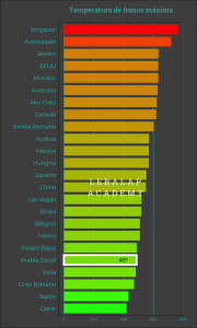 Como os podéis imaginar, temperatura media de los frenos muy baja, la máxima también es muy baja, por lo tanto, no hay ningún pico alto. ¿Y dónde tenemos el problema? En la temperatura mínima, que es muy baja. Y pensaréis: bueno, pues estupendo, porque así sí que no vamos a tener problemas de sobretemperatura, no van a echar fuego los frenos. Pero esto es un problema, porque los frenos tienden a “cristalizarse”.