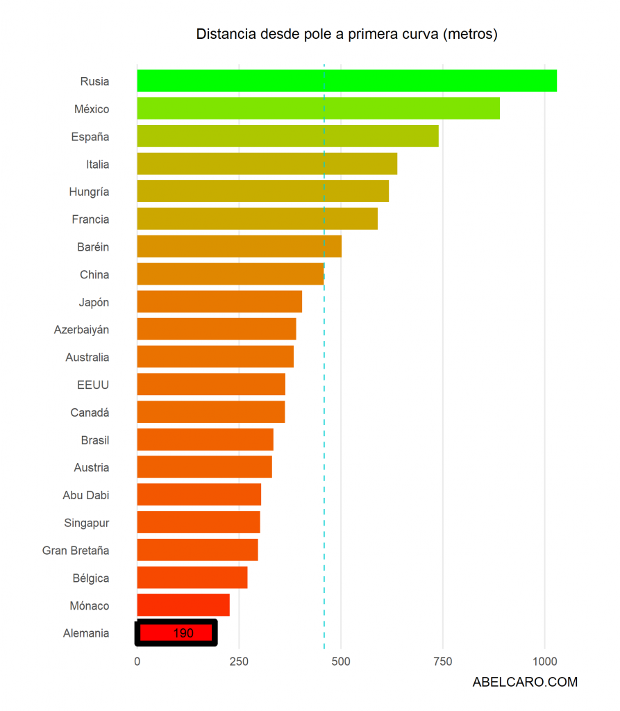 Además, ojo a la distancia a la primera curva, aunque en la salida se puede hacer a fondo siempre que haya el hueco suficiente.